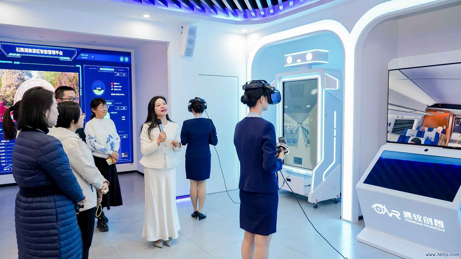 参加第五届“头雁风采”论坛的嘉宾现场体验智慧文旅虚拟仿真基地。(长沙商贸旅游职业技术学院 供图)