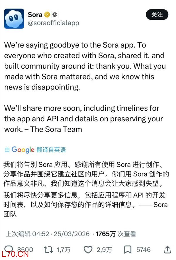 随后,Sora 官方也在 X 上发文证实了这一点,只是没有解释具体的原因。