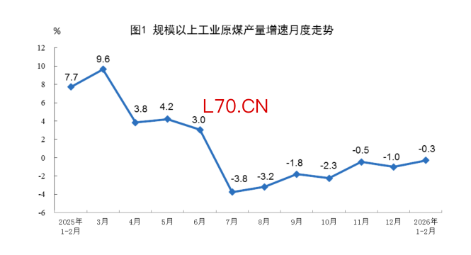 国家统计局:1—2月份,规上工业原煤产量同比下降0.3%