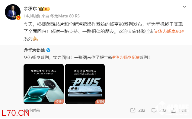 华为余承东发文称配资资质查询网,搭载麒麟芯片和全新鸿蒙操作系统的畅享90系列发布,华为手机终于实现了全面回归。