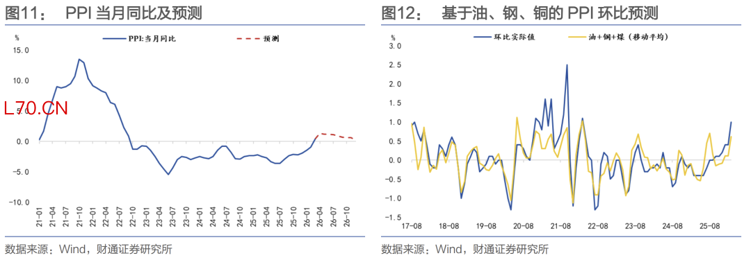 商品价格面临的主要问题还是需求不足,上游涨价难以向下游传导。我们预计钢价在供需双弱的格局下继续磨底、铜价在供给扰动和AI企业资本开支增长下高位震荡、油价高位回落、煤价受反内卷影响小幅上涨,在这一情境下,PPI环比大概率跟随油价变动转负。