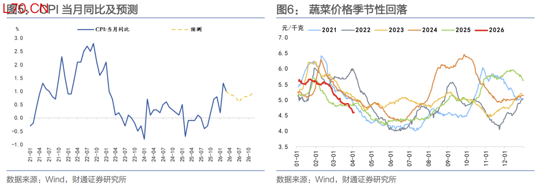 对于CPI,今年下半年鲜菜或是明显拖累项。2025年极端天气推升四季度蔬菜价格,预计短期内鲜菜项走势符合季节性,下半年开始或逐步成为拖累项。