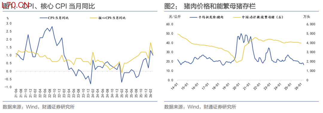 客观数据方面,3月CPI同比较前月下降0.3个百分点至1%,略低于市场预期。其中,食品项环比季节性回落,对CPI同比读数形成拖累。核心CPI同比较前月大幅下降0.7个百分点至1.1%。