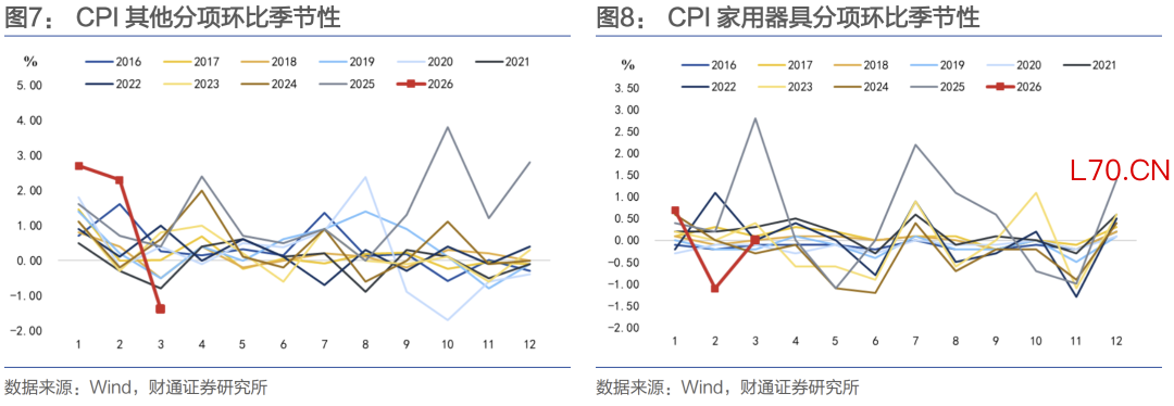 对于核心CPI,一方面内生动能依旧偏弱,另一方面去年的主要支撑项(黄金饰品、家用器具)都面临高基数的问题。