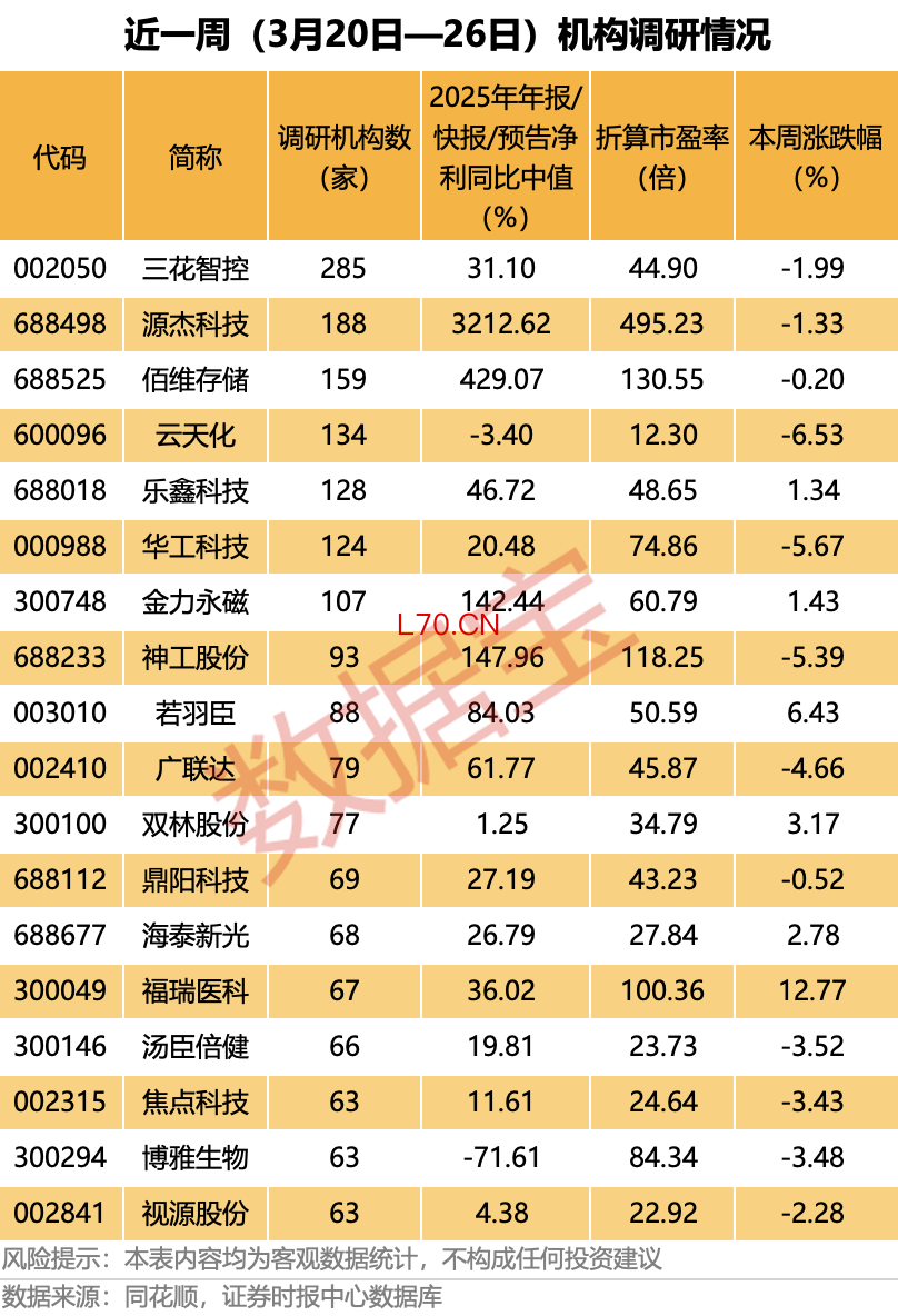 近一周机构调研150多只个股 三花智控、源杰科技等获逾百家机构调研