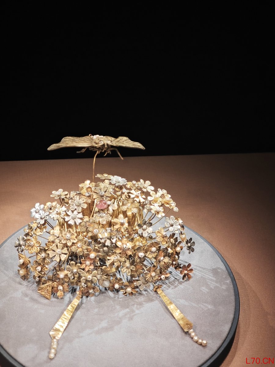 经系统修复后首次展出的李静训墓出土闹蛾金钗