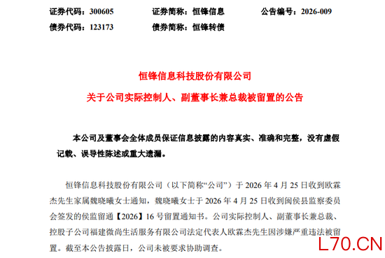 恒锋信息表示,截至公告披露日,公司未被要求协助调查。目前,公司法定代表人、实际控制人、董事长魏晓曦主持工作。公司其他董事和高级管理人员均正常履职,董事会运作正常,生产经营管理情况正常,上述事项不会对公司正常生产经营产生重大影响。
