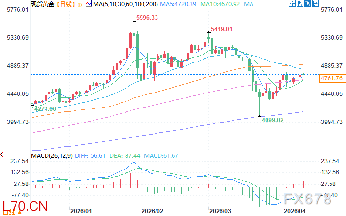 现货黄金日线图 来源:易汇通北京时间4月10日10:18 现货黄金 报 4751.76 美元/盎司